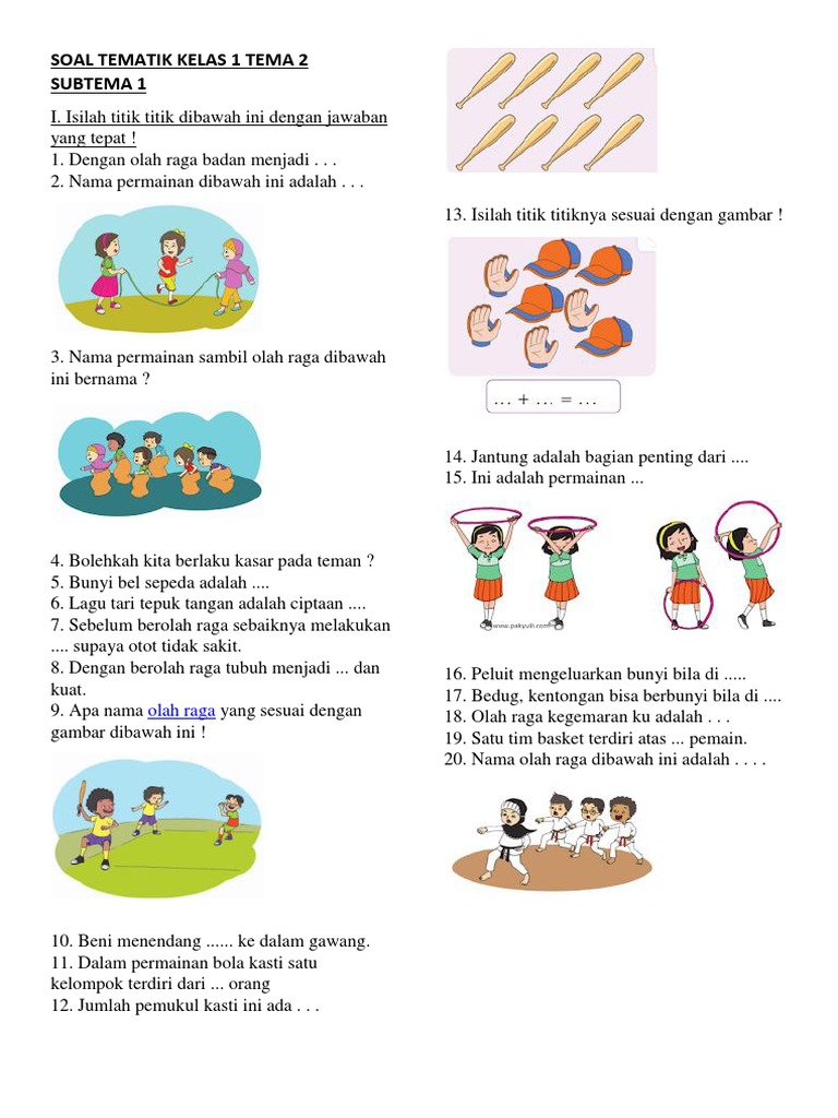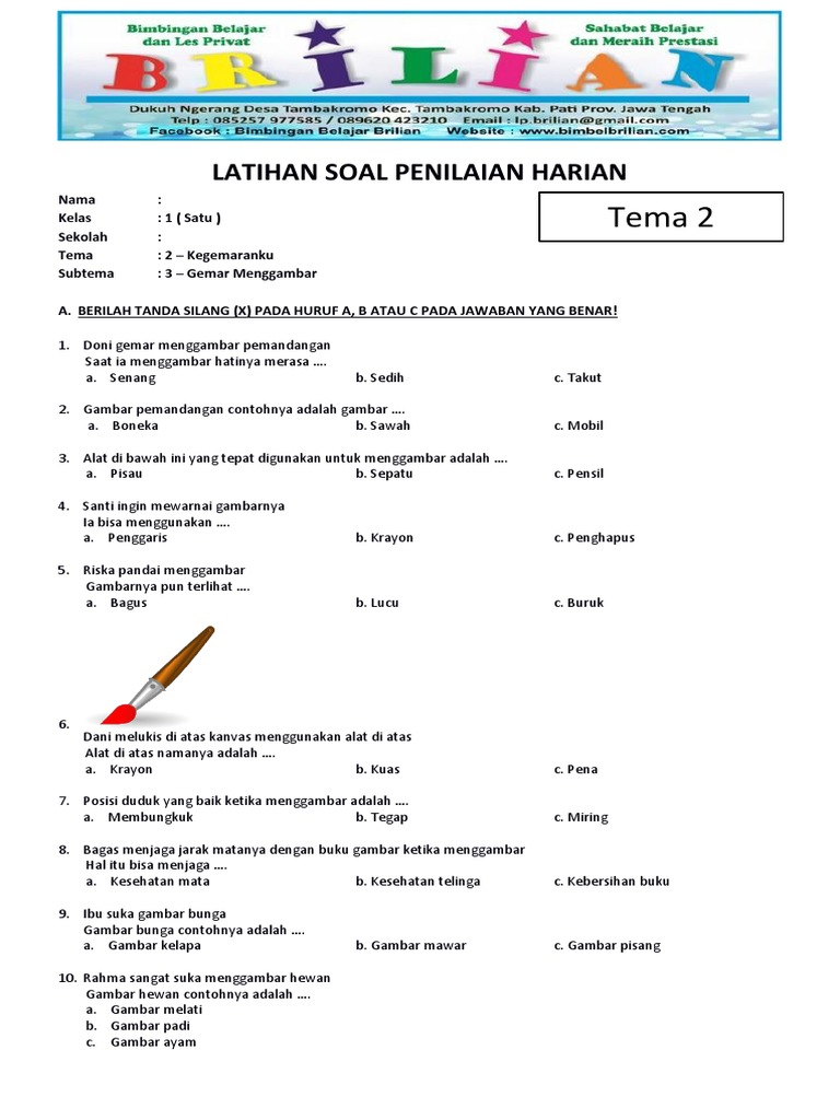 Soal kami buat dengan mengacu kepada buku kurikulum 2013. Pada kesempatan kali ini saya akan berbagi soal tematik kelas 1 tema 2 subtema 2 semester 1 berupa link yang bisa anda download secara gratis. Contoh soal tematik kelas 1 tema 2 kegemaranku subtema 3 gemar menggambar paket 1. Assalamu'alaikum wr.wb, halo selamat berkunjung kembali di blog yang sangat sederhana ini. Soal uh tema 1 sub tema 2.